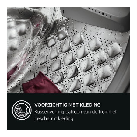Deze extra ruime trommel is ontworpen met een speciaal patroon dat je kleding beschermt tegen slijtage. Perfect voor grotere ladingen, met behoud van zuinigheid en korte wastijden.