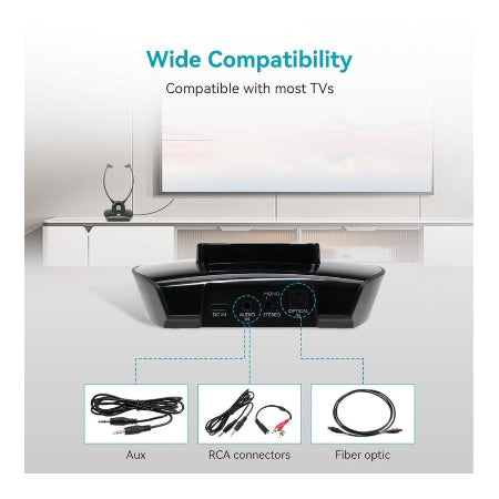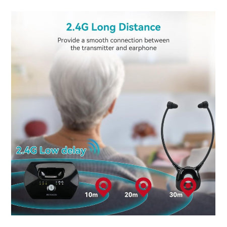- Instelbare demping: De draadloze TV-hoofdtelefoon ondersteunt aanpassing van het geluidsniveau.