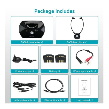 De Retekess TA008 is een draadloze hoofdtelefoon voor televisie, ontworpen met 2,4 GHz lage latentie, een eenvoudige ééntoets-hoorversterker, instelbare demping en dubbele batterijfunctionaliteit.