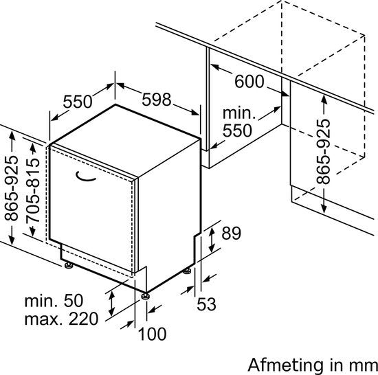 Met standaardafmetingen van 59,8 x 86,5 x 55 cm past de vaatwasser netjes onder het keukenblad, waardoor in- en uitladen eenvoudig en comfortabel is.