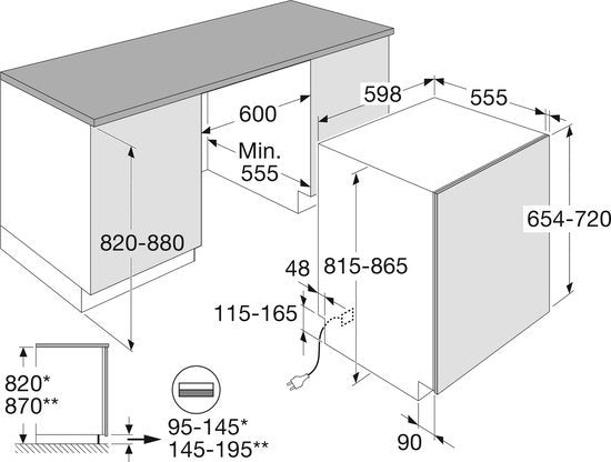 1. Afmetingen: H 815 x B 598 x D 550 mm