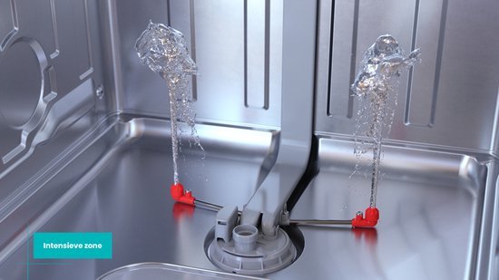 De intensieve zone met dubbele sproeiarm zorgt dat ook aangekoekte pannen en ovenschalen moeiteloos schoon worden.