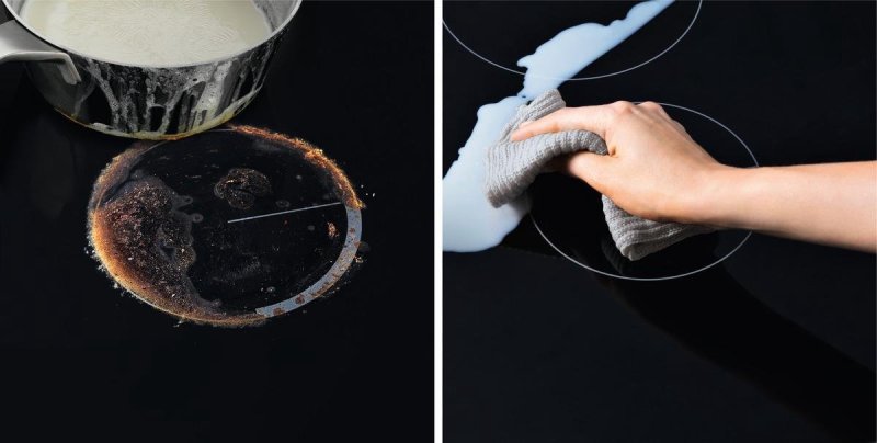 Het volledig vlakke en krasbestendige oppervlak maakt schoonmaken eenvoudig. Omdat alleen de pan wordt verwarmd, branden spetters niet vast. Even afnemen is voldoende om de kookplaat weer strak en glanzend te krijgen.