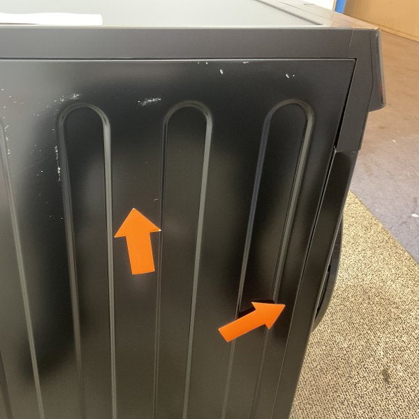 * Transportbouten ontbreken, dit betekend dat deze machine, te allen tijde, staand vervoerd moet worden!