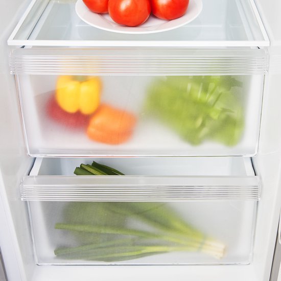 Met de No Frost technologie hoef je de vriezer nooit te ontdooien. Door de constante luchtcirculatie wordt vocht efficiënt afgevoerd, waardoor er geen ijsvorming optreedt in de vriezer of op je etenswaren. Dit zorgt voor een langere houdbaarheid van je voedsel en maakt de vriezer makkelijker schoon te houden. Daarnaast bespaart het energie doordat de vriezer efficiënter werkt.