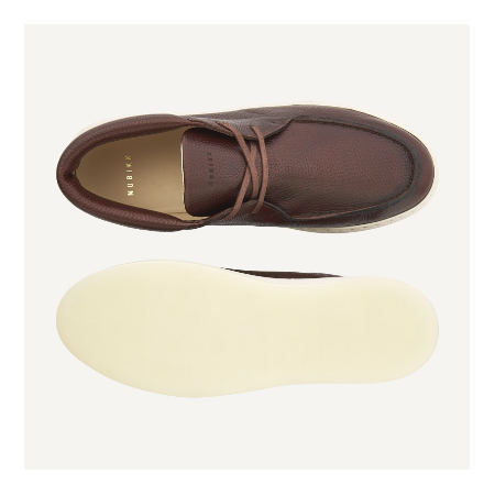 De Nubikk Jiro Gio in bruin generfd leer geeft een klassieke loafer een stoere, eigentijdse twist. Het rijke, gestructureerde leer wordt gecombineerd met de kenmerkende strakke lijnen van Nubikk en een sportieve, lichtgewicht PU-zool. De padded hiel biedt extra comfort, terwijl de verfijnde afwerking zorgt voor een stijlvolle, maar nooit stijve uitstraling.