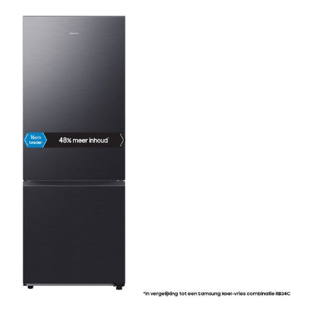 Op zoek naar meer ruimte voor je boodschappen? Dan is de Samsung RB50DG601EB1 koel-vriescombinatie precies wat je nodig hebt. Dankzij de SpaceMax-technologie biedt deze koelkast extra ruimte zonder dat het formaat of het energieverbruik toenemen.