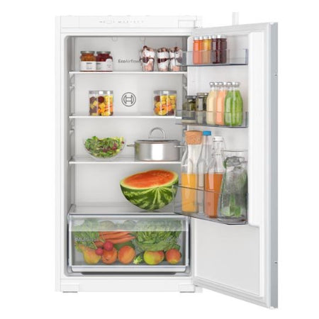 De ruime inbouwkoelkast biedt alles wat je nodig hebt voor het optimaal bewaren van je etenswaren.