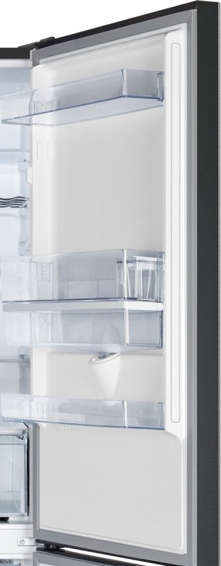Met zijn moderne black steel afwerking en handige waterdispenser in de deur is deze koel-vriescombinatie een echte blikvanger in elke keuken.