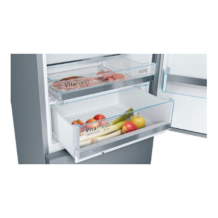 De Bosch KGE49AICA koel-vriescombinatie biedt geavanceerde technologieën en slimme functies om je voedsel optimaal te bewaren. Dit model beschikt over twee VitaFresh-laden: een 0°C-zone voor vlees en vis, en een speciale groente- en fruitlade.