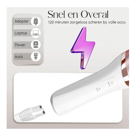 Dankzij het compacte en lichte ontwerp neem je de Ladyshaver eenvoudig mee in je tas. Perfect voor reizen, weekendjes weg of een snelle touch-up voor een belangrijke gelegenheid.