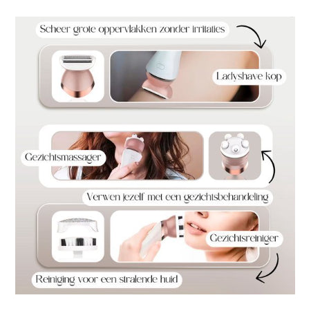 Sansbeauté® 6-in-1 Ladyshaver – Voor Gezicht, Lichaam en Bikinilijn