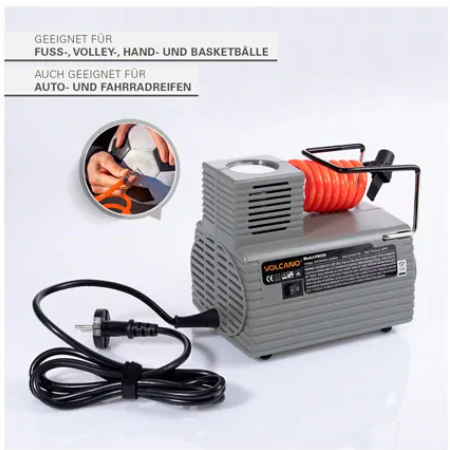 De PM250 ballenpomp is een elektrische compressor met geïntegreerde drukmeter, ideaal voor het oppompen van voetbal, volleybal, handbal, basketbal, maar ook voor auto- en fietsbanden. Dankzij het snelle wisselsysteem voor ventielen is hij eenvoudig in gebruik.