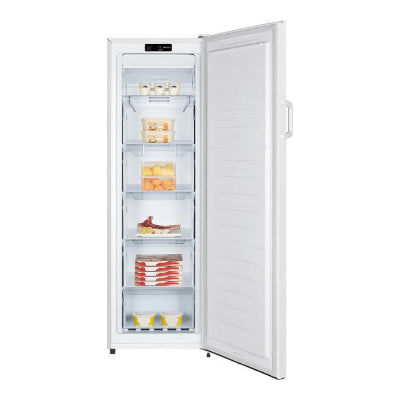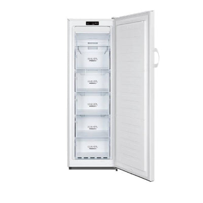 De vriezer is voorzien van een elektronische thermostaat en een LED-display aan de binnenzijde, waarmee je de temperatuur en extra functies eenvoudig instelt en afleest. Een ingebouwd deuralarm waarschuwt je direct als de deur niet goed gesloten is, zodat energieverlies wordt voorkomen.