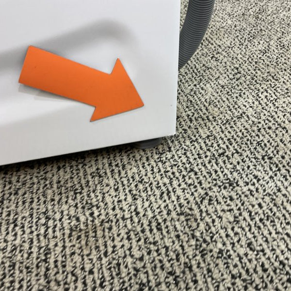 * Transportbouten ontbreken, dit betekend dat deze machine, te allen tijde, staand vervoerd moet worden!
