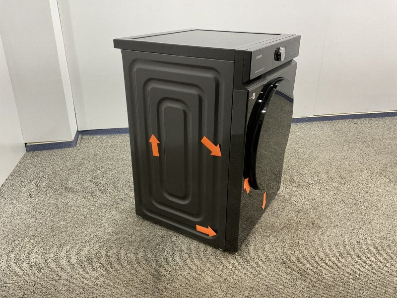 * Transportbouten ontbreken, dit betekend dat deze machine, te allen tijde, staand vervoerd moet worden!