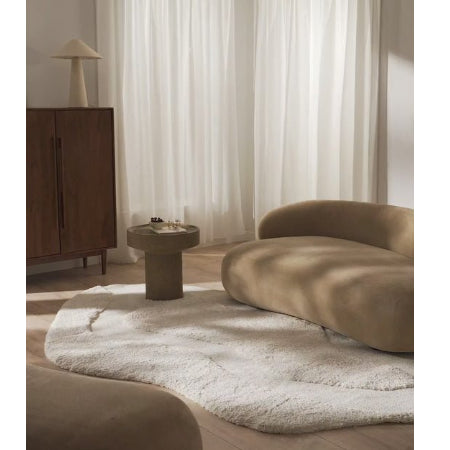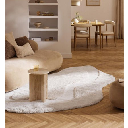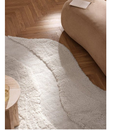 Het vloerkleed Kyla brengt een moderne en stijlvolle uitstraling in elke woonruimte dankzij de speelse organische vorm en zachte witte tint.
