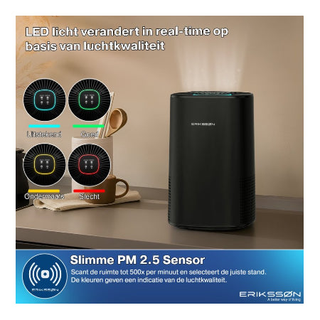 Adem vrijer en gezonder met de Erikssøn Air Pure Elite, een krachtige en stille luchtreiniger die de lucht in jouw kamer zuivert in minder dan 15 minuten.