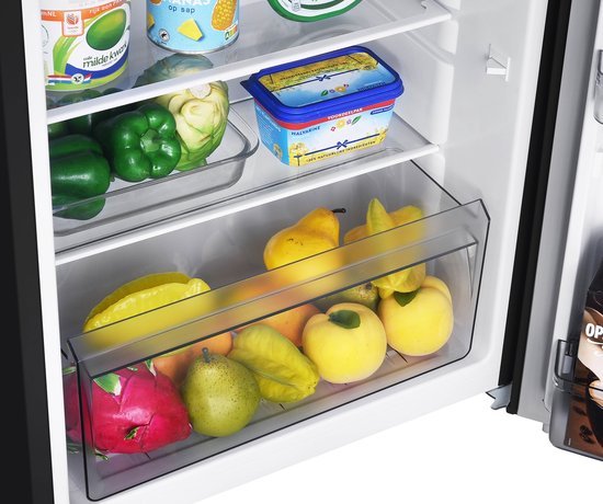 Met voldoende koel- en vriesruimte kun je al je boodschappen op een georganiseerde manier opbergen. De koelkast is voorzien van een vriesvak, twee glazen legplateaus, een groentelade en drie deurvakken.
