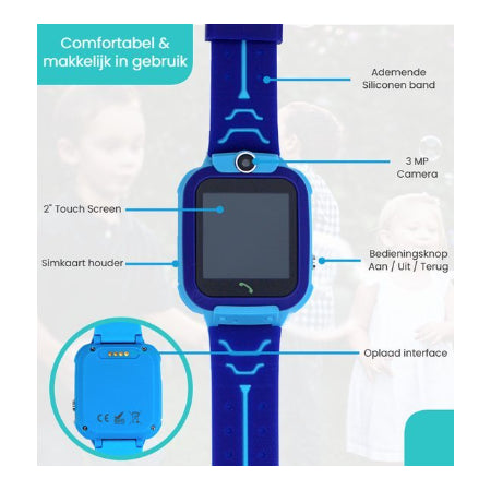 VUBIO Kinder Smartwatch Blauw – Inclusief Simkaart – Bellen – Camera