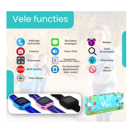 De VUBIO Kinder Smartwatch is de perfecte all-in-one smartwatch voor uw kind. Hiermee kan uw kind eenvoudig bellen en gebeld worden, wat zorgt voor een gerust gevoel. Daarnaast biedt de smartwatch leuke en leerzame functies zoals een camera en een rekenspelletje!