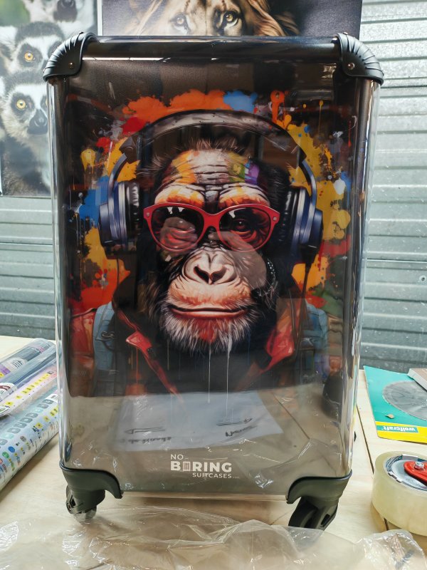 Let op: de koffer, waar het om gaat, heeft de foto waar de aap een rode bril op heeft, andere zijn slechts voor de vormgeving!