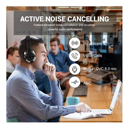 Dankzij de Active Noise Cancelling (ANC) geniet je van helder geluid zonder storende omgevingsgeluiden, ideaal voor in de trein, metro of het vliegtuig.