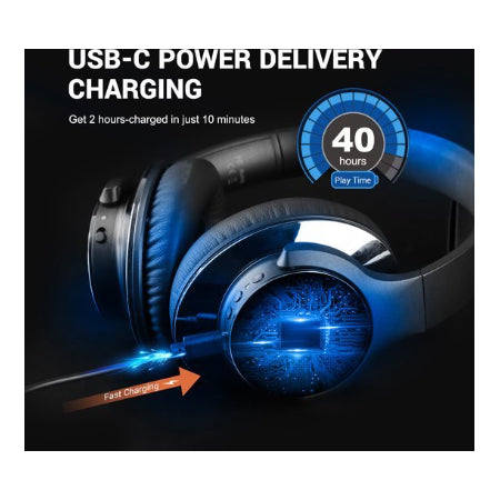 Met een accuduur van tot 40 uur kun je dagenlang ongestoord luisteren. Even snel opladen? Na slechts 5 minuten laden speel je alweer 2 uur muziek af. Opladen gebeurt eenvoudig via USB-C.
