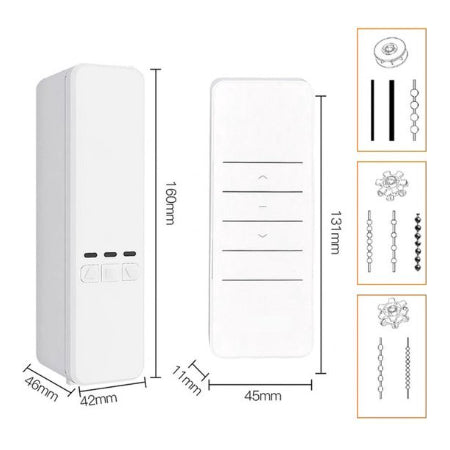 De motor is geschikt voor alle rolgordijnen met een ketting. Je koppelt hem direct aan je wifi-netwerk (2,4 GHz), zonder dat je een extra hub of gateway nodig hebt.