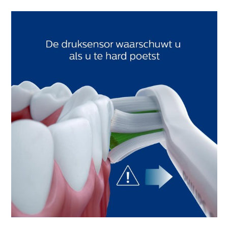 - Poetsdruksensor: waarschuwt direct bij te hard poetsen.