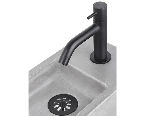 Dit complete pakket bestaat uit vier perfect bij elkaar passende producten van Differnz: een matzwarte afvoerplug, een matzwarte Differnz fonteinkraan met staafgreep en gebogen uitloop, een matzwarte Differnz bekersifon (1 1/4" x 32 mm) en de keramische Differnz Hura fonteinset in wit. Samen vormen ze een stijlvolle en moderne oplossing voor het toilet of een compacte sanitaire ruimte.