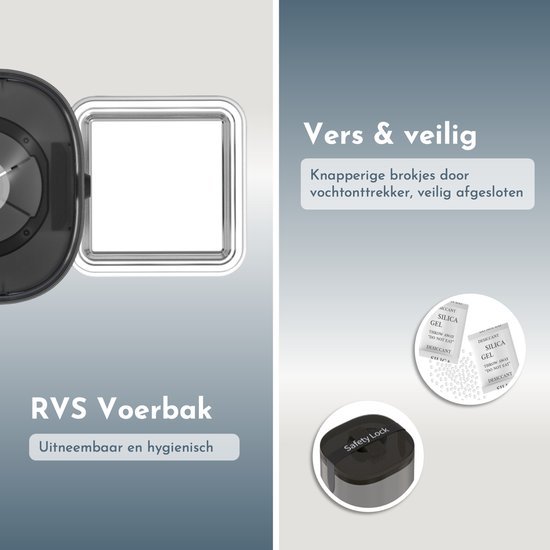 Met een ruim reservoir van 6 liter heeft je huisdier voldoende voer voor ongeveer een maand. Het verwijderbare RVS-bakje is eenvoudig schoon te maken en houdt het voer vers. Je stelt nauwkeurig automatische voedermomenten en porties in, wat bijdraagt aan een gezond eetpatroon en helpt overgewicht te voorkomen. Via data tracking krijg je inzicht in het eetgedrag van je kat, zodat je de voeding perfect kunt afstemmen op zijn behoeften.
