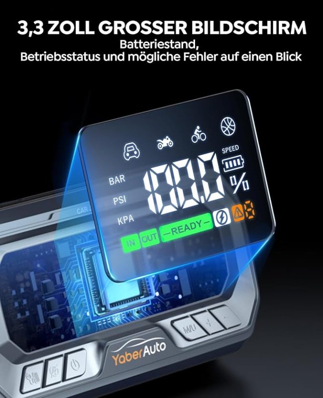 YaberAuto YA90 Starthulp Powerbank – 6500 A, 160 PSI Compressor, 3,3 inch LCD, 600 Lumen Noodverlichting
