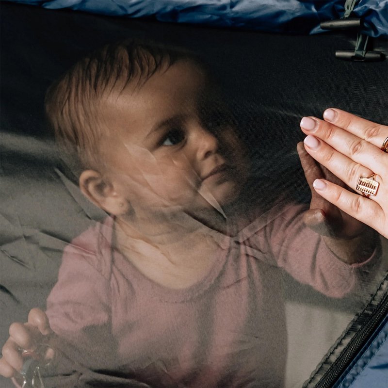 Uitgeklapt biedt het bedje een comfortabele ruimte van 136 × 91 × 72 cm. Het stevige, ademende gaas zorgt voor een uitstekende luchtcirculatie en houdt insecten veilig buiten. Het meegeleverde zelfopblaasbare matras van 2,5 cm geeft extra comfort en ondersteuning voor je kindje.