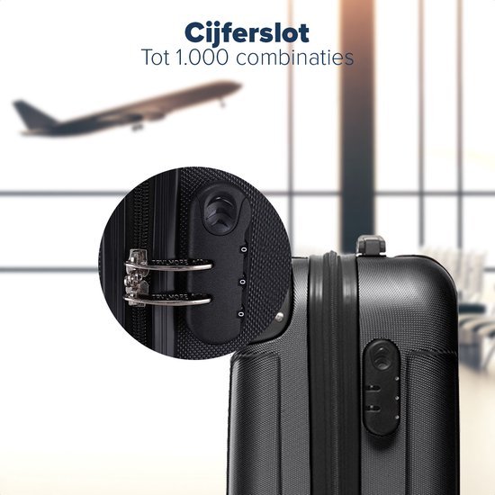De koffers zijn gemaakt van ABS en polycarbonaat, waardoor ze stevig, breukbestendig en krasvast zijn. Elke koffer is uitgerust met een 3-cijferig cijferslot, zodat je persoonlijke spullen altijd veilig zijn opgeborgen.