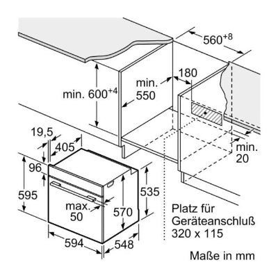 2. Inbouwruimte nodig: ca. 600 × 568 × 550 mm