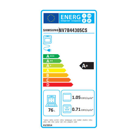 De Samsung NV7B44305CS inbouwoven biedt een royale capaciteit van 76 liter.