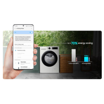 - AI Energy Mode: Met deze functie in de SmartThings app bespaar je tot 70% energie per wasbeurt. Dit wordt bereikt door koudere temperaturen, langere programma’s en de EcoBubble-technologie.