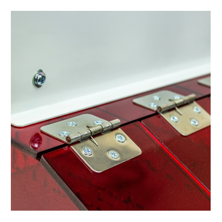 - Hoge voorkant met veerbelaste, scharnierende toegangsdeuren voor maximale veiligheid van de dieren