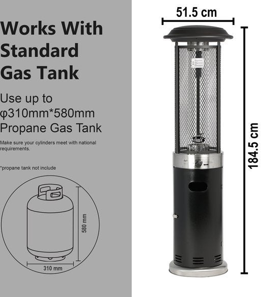 Bali OUTDOORS Lounge Terrasverwarmer 11kW - Staande Heater - Flameheater - incl. Gasdrukregelaarset 50 mbar & Slang 50 cm - Gas - Model SRPH84