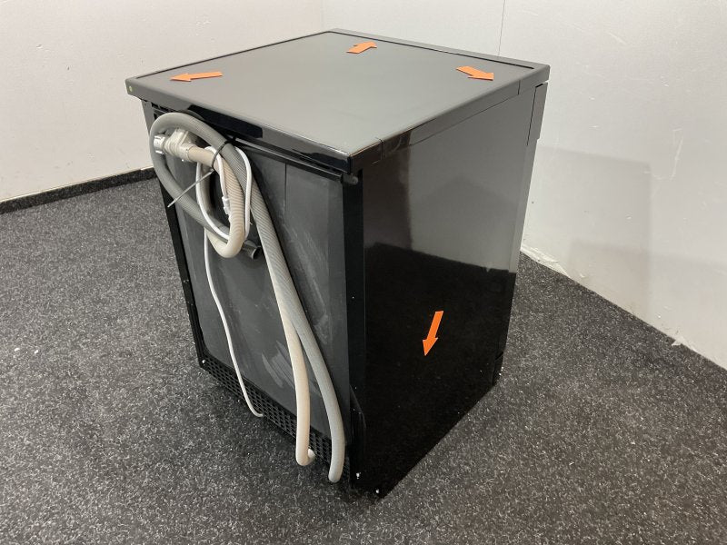 Zijkant een deuk, maar een perfect werkende machine voor een speciale aanbieding, met uiteraard de volle twee garantie erop !