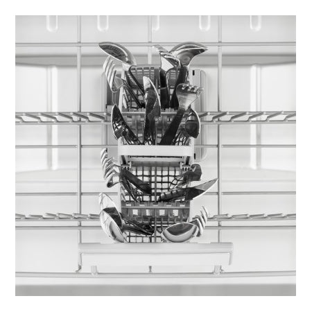 Deze vaatwasser heeft een aparte besteklade, wat zorgt voor meer ruimte in de onderste korf voor andere vaat. Een besteklade is ook gemakkelijker in en uit te ruimen in vergelijking met een mandje.