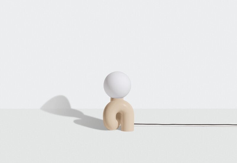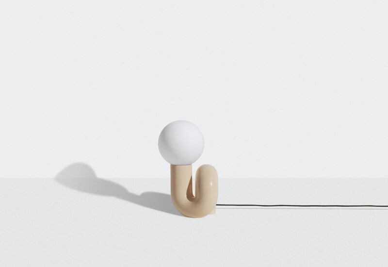 De Neotenic tafellamp van Petite Friture heeft een speels ontwerp dat een dikke, golvende keramische voet combineert met een ingetogen glazen koepel. De inspiratie voor de kurkentrekkerachtige vorm van de basis, gecreëerd door het in de VS gevestigde ontwerpduo Jumbo, is afkomstig van Italiaanse cavatappi-pasta, en de complexe vorm wordt in meerdere stappen vervaardigd door bekwame keramisten in Portugal.