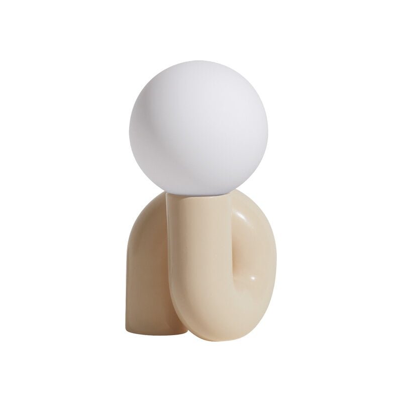 De Neotenic tafellamp van Petite Friture heeft een speels ontwerp dat een dikke, golvende keramische voet combineert met een ingetogen glazen koepel.