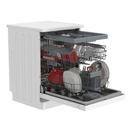 De Sharp QWNA1FF45DWEU is een vrijstaande vaatwasser in een moderne, witte uitvoering die perfect past in elke keukenstijl. Dankzij het elegante design en het lage geluidsniveau van slechts 45 dB is deze vaatwasser ook zeer geschikt voor open keukens. Je geniet van een schone vaat zonder storend geluid tijdens gesprekken, werk of een ontspannen avond voor de tv.