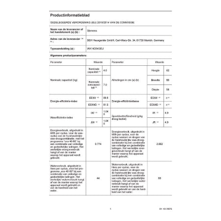 Verpakkingsinhoud Tooltip Verpakkingsinhoud Wat er wordt meegeleverd als je dit product bestelt.Siemens WK14D543EU was-droogcombinatie