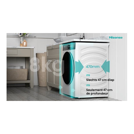 Hisense WF5I8043BWF – compact, slim en energiezuinig. Dé wasmachine die past in elke ruimte en in elk huishouden.