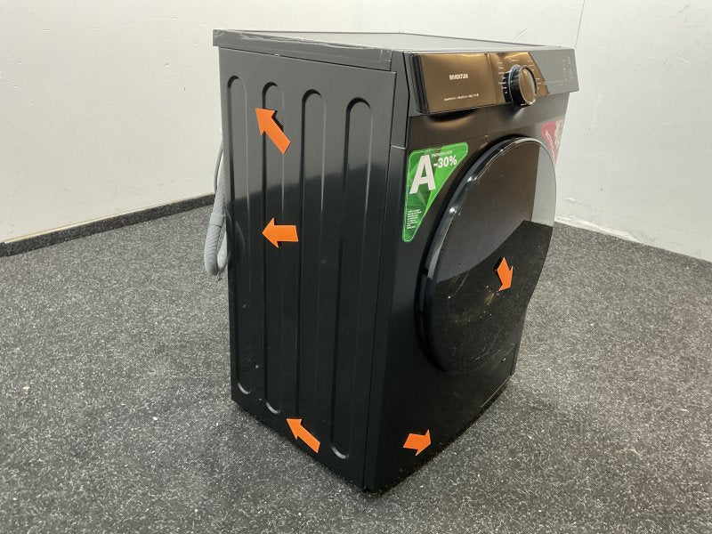 De Inventum VWM8030B is een moderne, energiezuinige wasmachine met een strak zwart design.