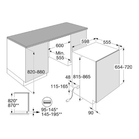 - Afmetingen: H 815 x B 598 x D 550 mm