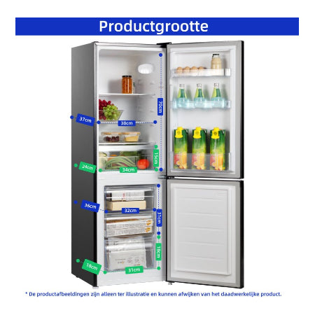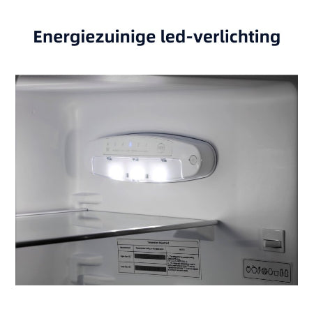 Dankzij zijn compacte afmetingen – 144 cm hoog, 47.4 cm breed en 49.5 cm diep – past deze koel-vriescombinatie moeiteloos in vrijwel elke keuken. Ondanks zijn bescheiden formaat biedt hij verrassend veel ruimte voor al uw etenswaren.